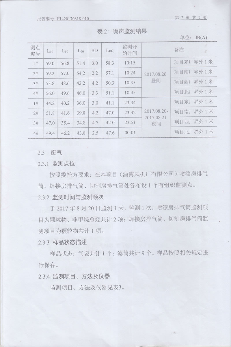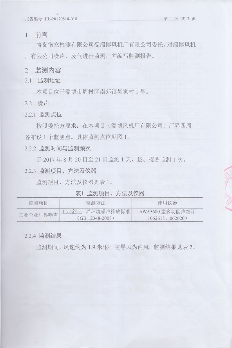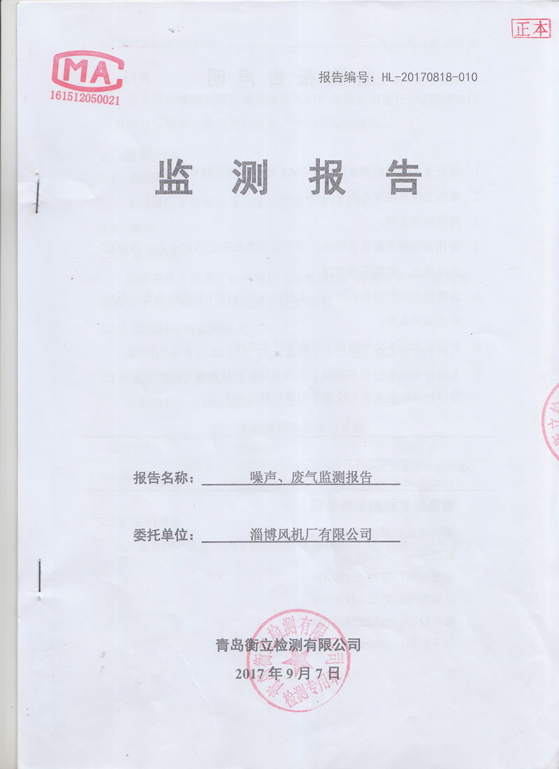 淄博風(fēng)機廠監(jiān)測報告公示