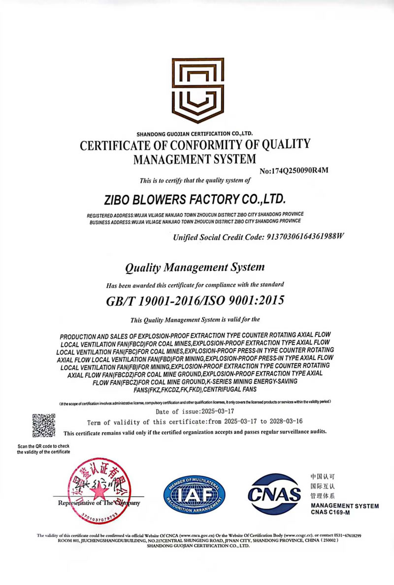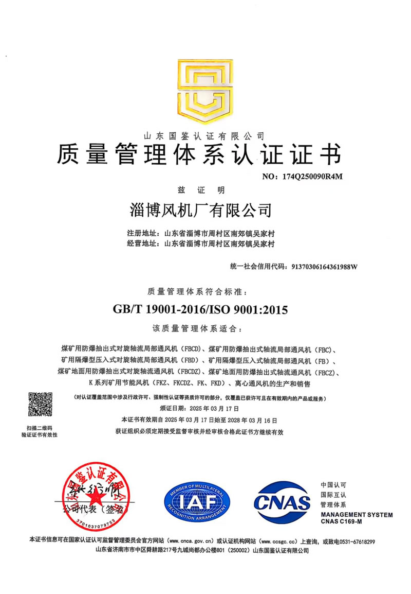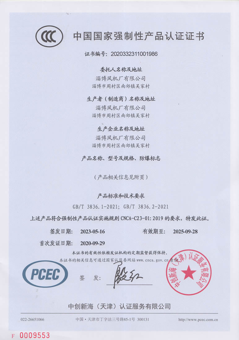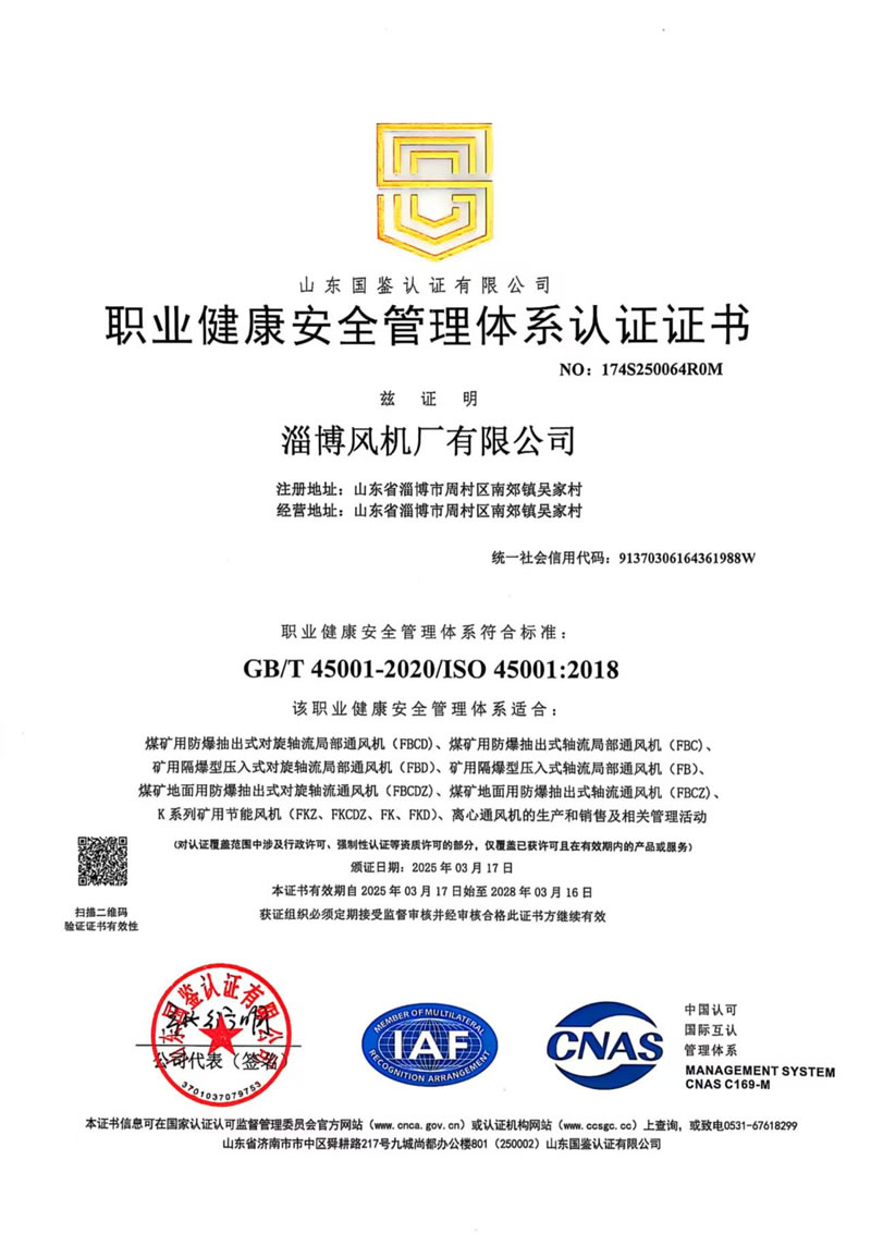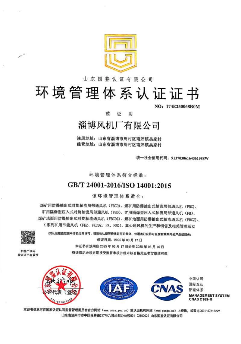 熱烈慶祝:一、淄博風(fēng)機(jī)廠有限公司全系產(chǎn)品通過能效綠色節(jié)能環(huán)保二級(jí)認(rèn)證. 二、 淄博風(fēng)機(jī)廠有限公司通過安全標(biāo)準(zhǔn)化驗(yàn)收合格. 三、注冊(cè)資金增資至7800萬.