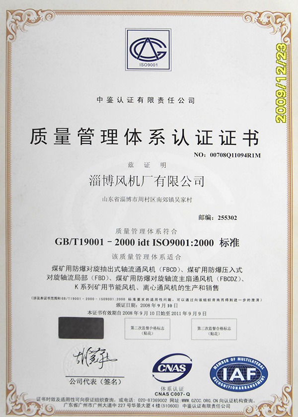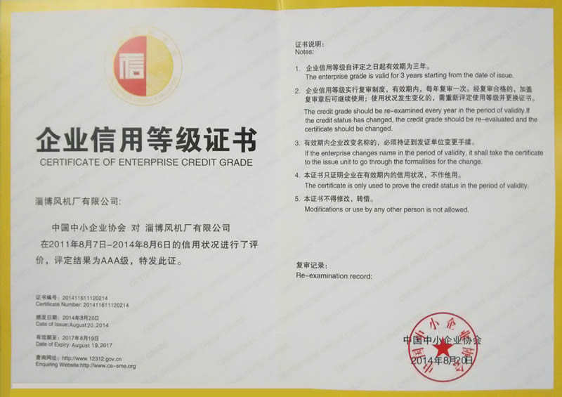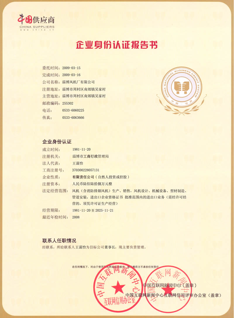 熱烈慶祝:一、淄博風機廠有限公司全系產(chǎn)品通過能效綠色節(jié)能環(huán)保二級認證. 二、 淄博風機廠有限公司通過安全標準化驗收合格. 三、注冊資金增資至7800萬.